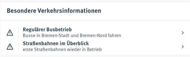 Auf der Startseite steht noch immer etwas von regulären Busverkehr - obwohl zwei Linien nicht verkehren. Dies ist bei diesen auch nicht in den Störungsmeldungen hinterlegt. Lauftext oben weist aber auf diese Ausfälle hin.